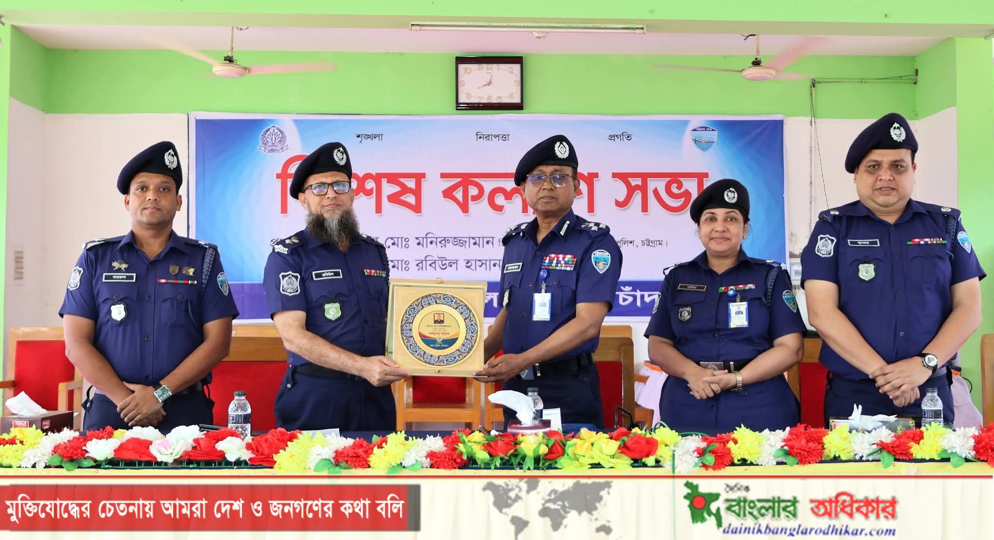 বেলা ১১:০০ ঘটিকায় পুলিশ লাইন্স মাল্টিপারপাস শেডে জনাব মোঃ রবিউল হাসান (আইজি ব্যাজ ও শুদ্ধাচার পুরস্কার প্রাপ্ত), পুলিশ সুপার, চাঁদপুর এর সভাপতিত্বে বিশেষ কল্যাণ সভা অনুষ্ঠিত হয়। উক্ত সভায় প্রধান অতিথি হিসেবে উপস্থিত ছিলেন জনাব মোঃ মনিরুজ্জামান, ডিআইজি, চট্টগ্রাম রেঞ্জ, বাংলাদেশ পুলিশ, চট্টগ্রাম মহোদয়। সভা শেষে রেঞ্জ ডিআইজি মহোদয় পুলিশ লাইন্সের বিভিন্ন ইউনিট পরিদর্শন করেন। পরবর্তীতে দুপুর ১২:৩০ ঘটিকায় তিনি পুলিশ সদস্যদের সাথে পুলিশ লাইন্স জামে মসজিদে জুমার নামাজ আদায় ও মধ্যাহ্ন ভোজে অংশগ্রহণ করেন।
