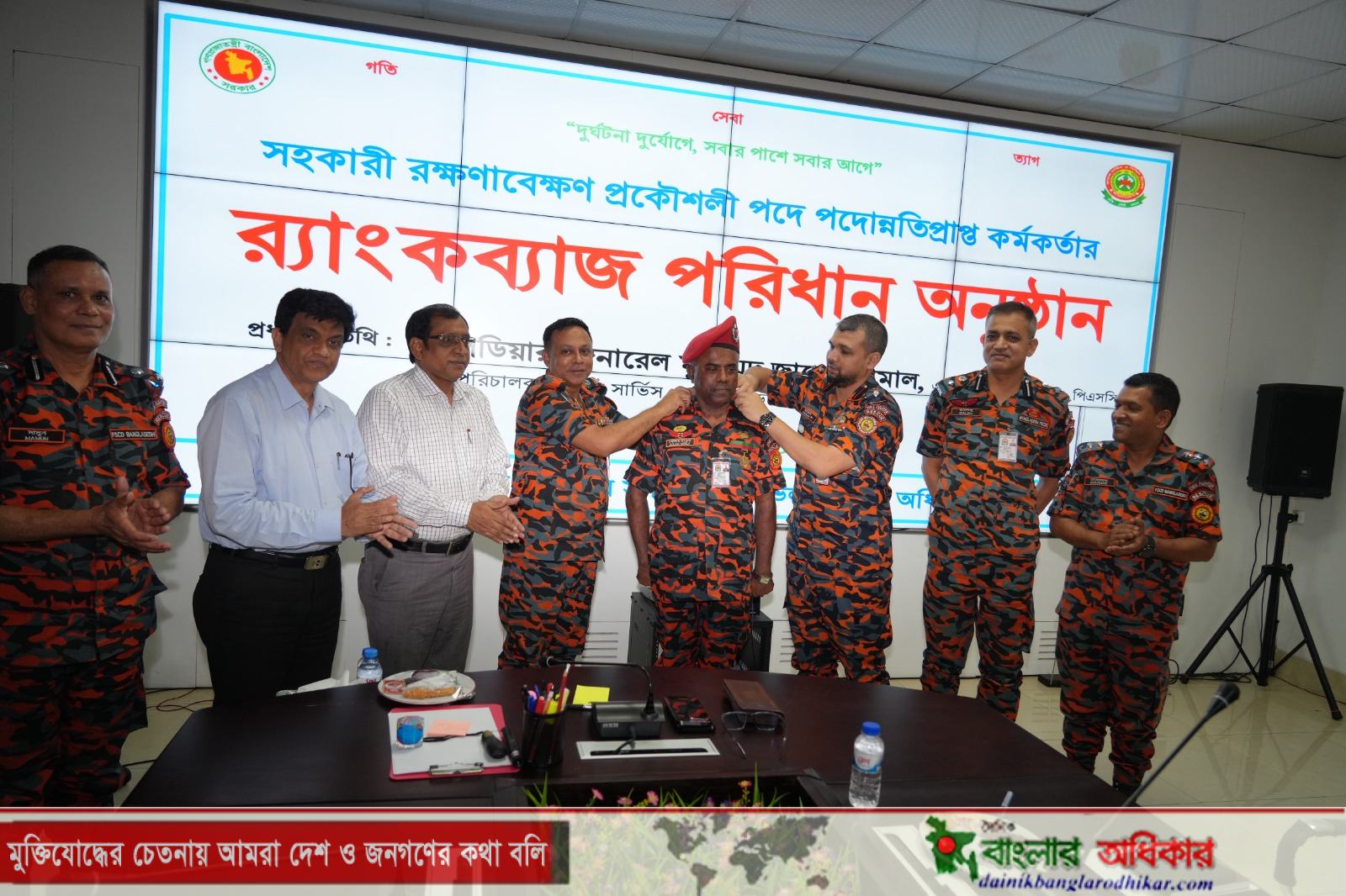 আজ অনুষ্ঠিত এক সংক্ষিপ্ত অনুষ্ঠানে বাংলাদেশ ফায়ার সার্ভিস এন্ড সিভিল ডিফেন্সের মহাপরিচালক এবং পরিচালক (অপারেশন ও মেইনটেনেন্স) তাঁর কাঁধে এই র্যাঙ্ক ব্যাজ পরিয়ে দেন। এ সময় প্রতিষ্ঠানের অন্যান্য পরিচালকগণ উপস্থিত ছিলেন।