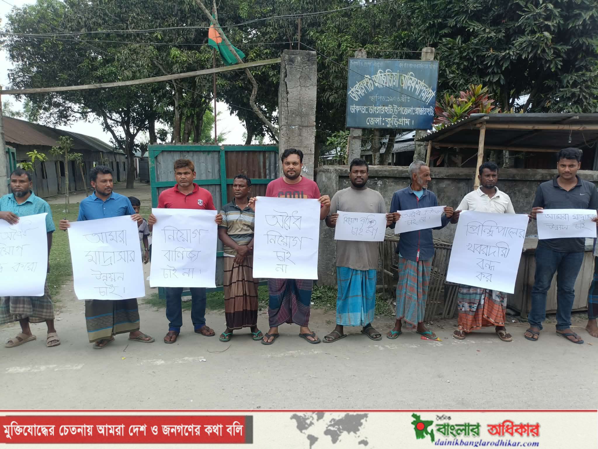 ​কুড়িগ্রামের রাজারহাটের ডাংরারহাট আজিজিয়া আলিম মাদ্রাসায় আর্থিক লেনদেনের মাধ্যমে নিয়োগ বাণিজ্য বন্ধের দাবিতে মানববন্ধন অনুষ্ঠিত হয়েছে।