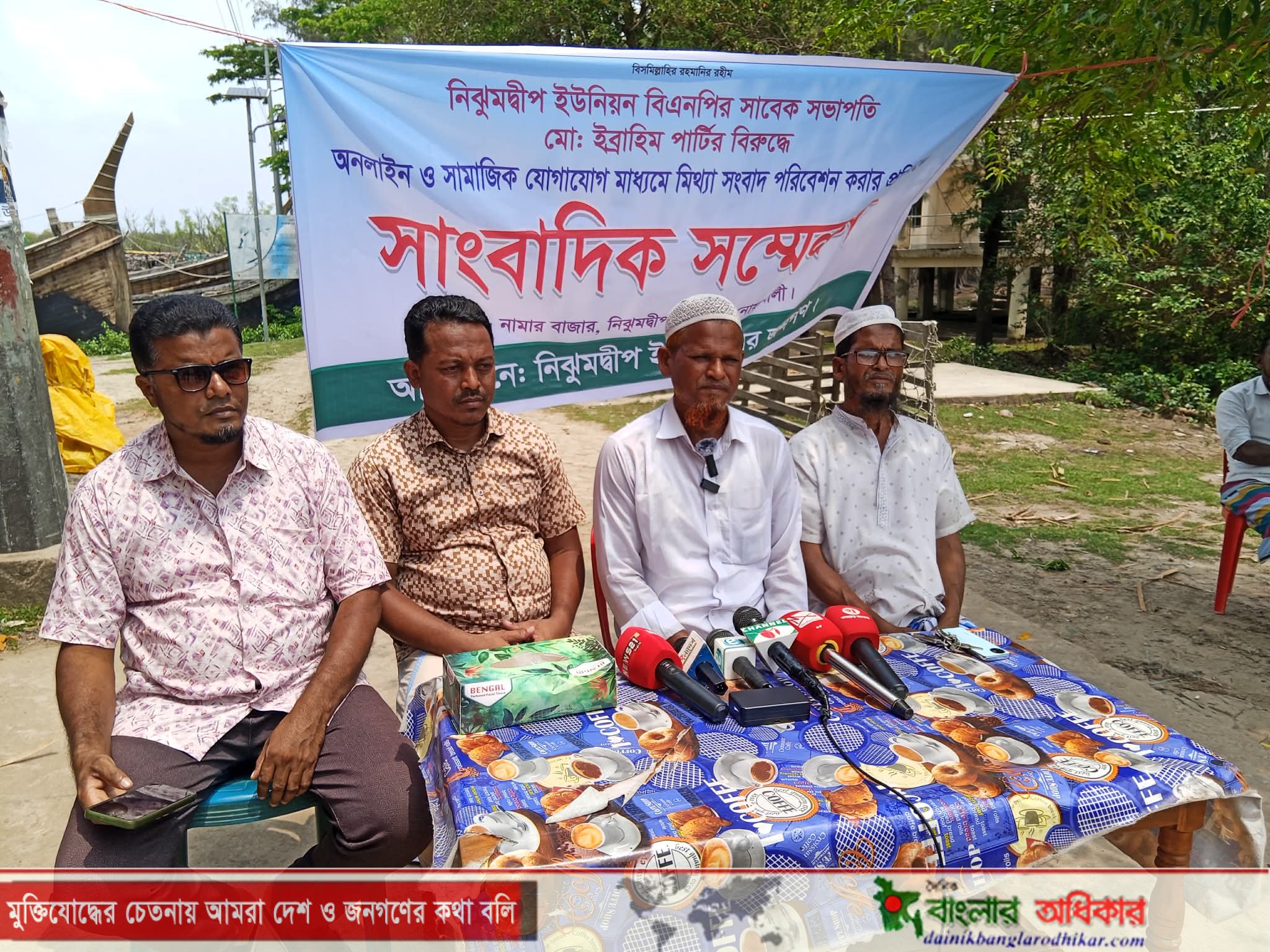 নোয়াখালীর হাতিয়া উপজেলার নিঝুমদ্বীপ ইউনিয়ন বিএনপির সাবেক সভাপতির বিরুদ্ধে অনলাইন ও সামাজিক যোগাযোগ মাধ্যমে মিথ্যা, বানোয়াট ও মানহানিকর অপপ্রচারের প্রতিবাদে সংবাদ সম্মেলন অনুষ্ঠিত হয়েছে।