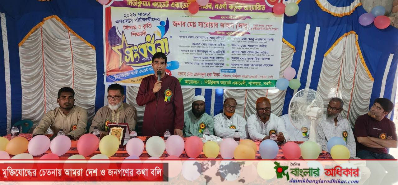 ​নওগাঁর সাপাহারে নিউক্লিয়াস ক্যাডেট একাডেমির ২০২৬ সালের এসএসসি পরীক্ষার্থীদের বিদায় ও কৃতি শিক্ষার্থীদের সংবর্ধনা প্রদান করা হয়েছে।