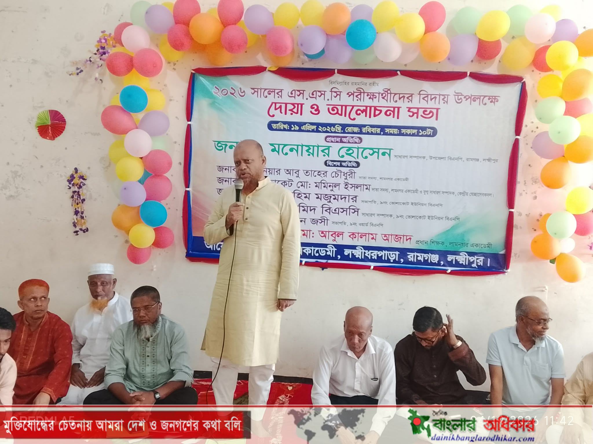 রামগঞ্জে লামনগর একাডেমির এসএসসি পরীক্ষার্থীদের বিদায় ও দোয়া মাহফিল অনুষ্ঠিত