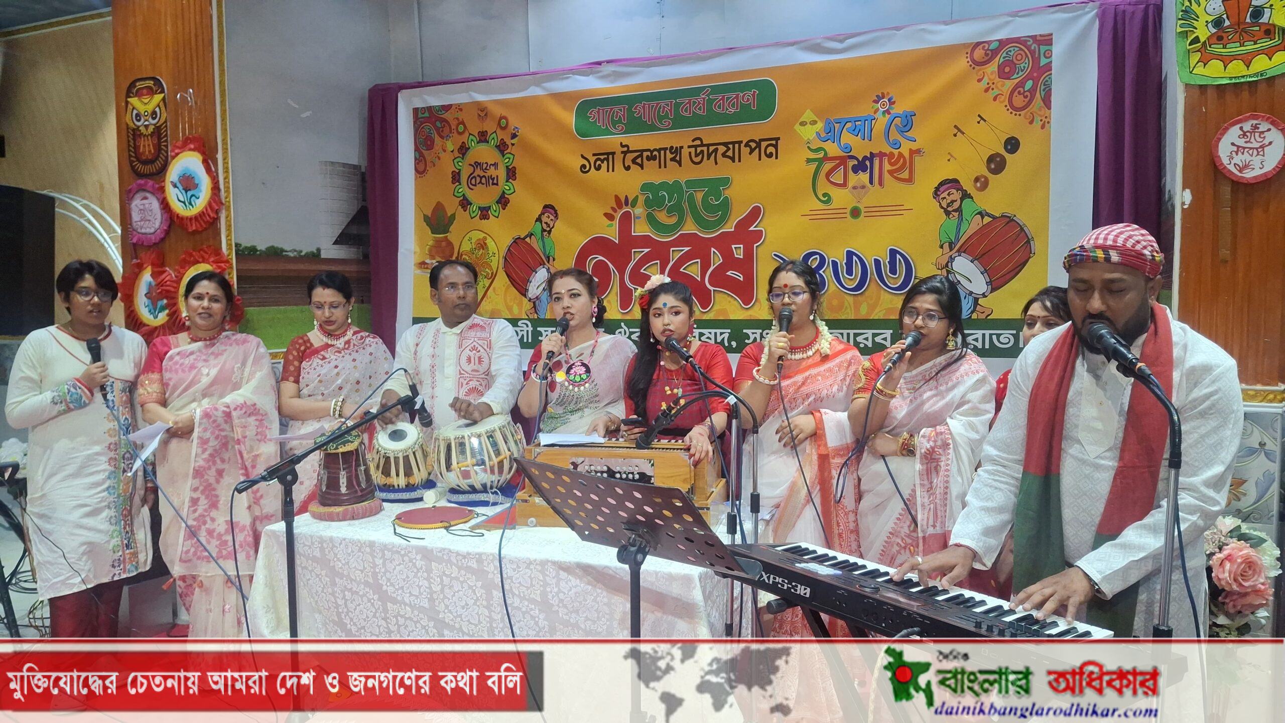 অনুষ্ঠানের শুরুতে শিল্পীদের সম্মিলিত কণ্ঠে বৈশাখের চিরচেনা গান ‘এসো হে বৈশাখ’ পরিবেশনের মাধ্যমে উৎসবের সূচনা হয়। এরপর ‘আনন্দলোকে মঙ্গলালোকে’ ও ‘নববর্ষের প্রথম প্রভাতে’ সহ গ্রামবাংলার ঐতিহ্যবাহী মেলার গানে মেতে ওঠে উপস্থিত দর্শকরা। অনুষ্ঠানটি সঞ্চালনা করেন স্নিগ্ধা সরকার তিথি ও রাজীব সাহা।