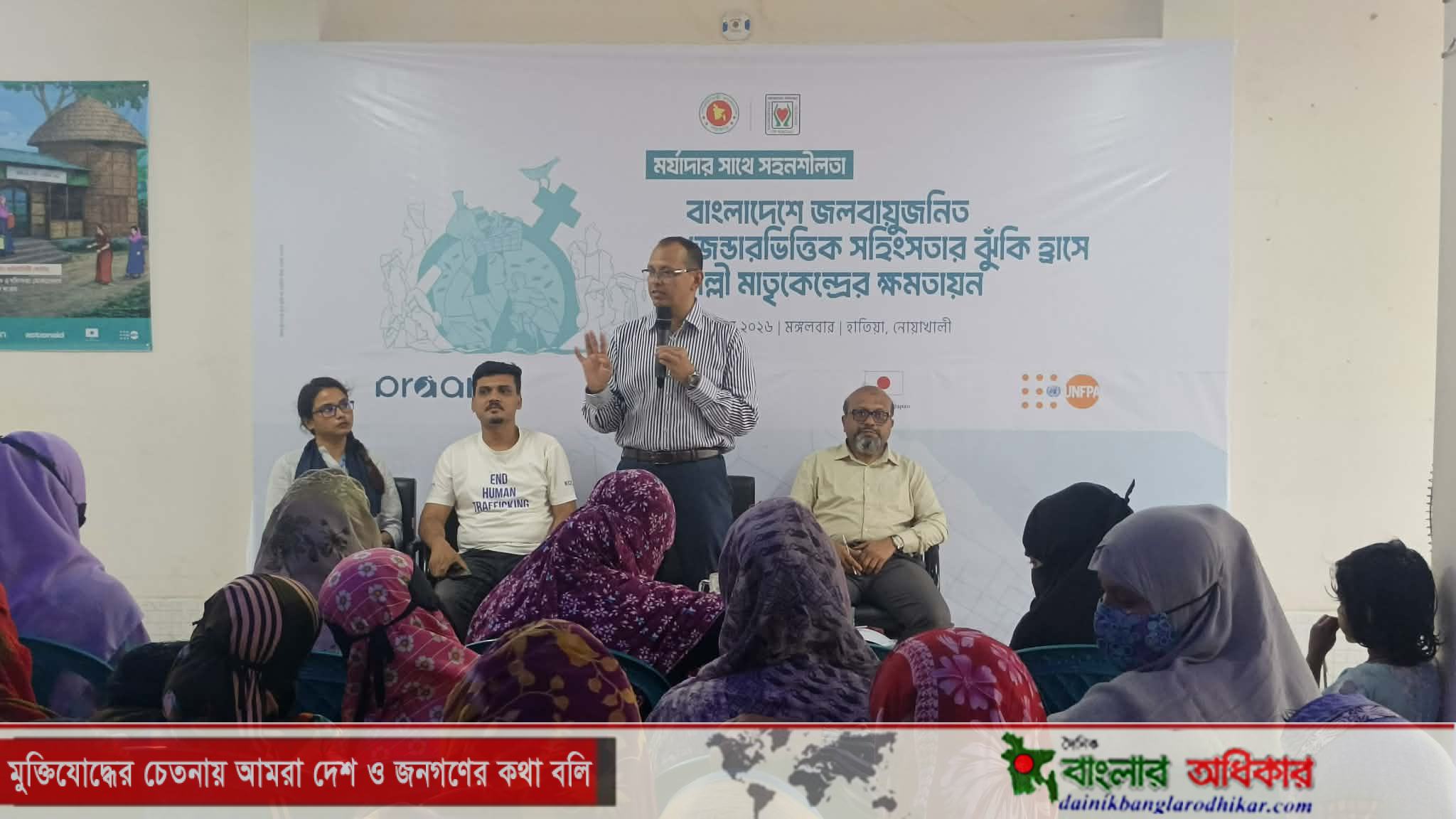 কর্মশালায় বক্তারা বলেন, “দেশের বিভিন্ন অঞ্চলে বর্তমানে তীব্র তাপদাহ ও তাপমাত্রা বৃদ্ধির প্রবণতা দেখা দিচ্ছে। বিশেষ করে হাতিয়াসহ উপকূলীয় এলাকায় এর প্রভাব অনেক বেশি। এমন প্রতিকূল আবহাওয়ায় নারীরা দ্বিগুণ ঝুঁকির মুখে পড়ছেন। একদিকে স্বাস্থ্যঝুঁকি, অন্যদিকে পারিবারিক ও সামাজিক সহিংসতার আশঙ্কা তৈরি হচ্ছে।” এই পরিস্থিতি মোকাবিলায় নারীদের সুরক্ষায় সচেতনতা বৃদ্ধি এবং স্থানীয় পর্যায়ে কার্যকর সেবা কাঠামো গড়ে তোলার ওপর গুরুত্বারোপ করেন তাঁরা।