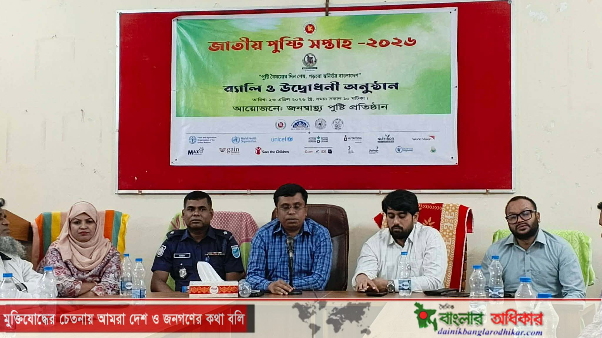 মো. আলী সোহেল, কিশোরগঞ্জ জেলা প্রতিনিধি: “পুষ্টি বৈষম্যের দিন শেষ, গড়বো স্বনির্ভর বাংলাদেশ”—এই প্রতিপাদ্যকে সামনে রেখে কিশোরগঞ্জের কুলিয়ারচরে বর্ণাঢ্য র‍্যালি ও উদ্বোধনী অনুষ্ঠানের মধ্য দিয়ে ‘জাতীয় পুষ্টি সপ্তাহ-২০২৬’ পালিত হয়েছে।