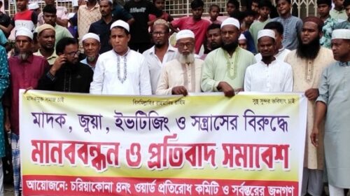 কটিয়াদীতে মাদক, জুয়া ও সন্ত্রাসের বিরুদ্ধে মানববন্ধন ও প্রতিবাদ সমাবেশ