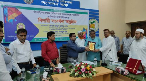 চাঁপাইনবাবগঞ্জ পৌরসভায় অবসরপ্রাপ্ত কর্মকর্তা-কর্মচারীদের বিদায়ী সংবর্ধনা অনুষ্ঠিত