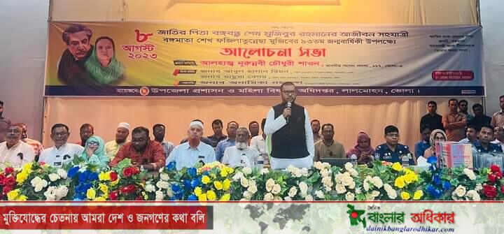 জাতির জনক বঙ্গবন্ধু শেখ মুজিবুর রহমানের সহধর্মিণী বঙ্গমাতা শেখ ফজিলাতুন্নেছা মুজিব এর ৯৩ তম জন্ম বার্ষিকী উপলক্ষে ভোলার লালমোহন উপজেলা প্রশাসন ও মহিলা বিষয়কের আয়োজনে আলোচনা সভা অনুষ্ঠিত হয়েছে। (৮…