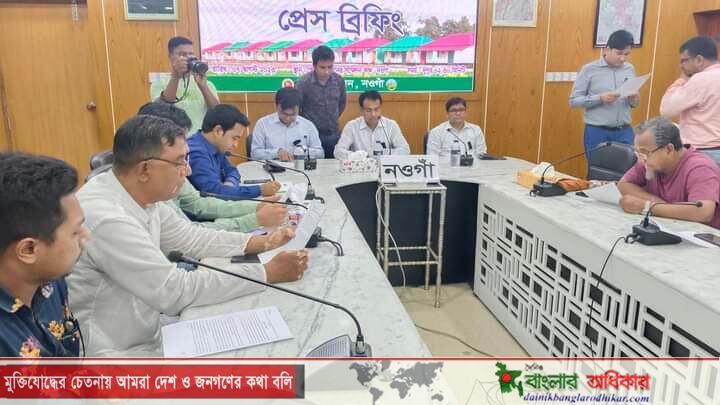 নওগাঁয় মুজিব্বর্ষ উপলক্ষ্যে প্রধানমন্ত্রী কর্তৃক ৪র্থ পর্যায়ের (২য় ধাপে) ভূমিহীন – গৃহহীন পরিবারের নিকট জমিসহ গৃহ হস্তান্তর কার্যক্রমের শুভ উদ্ভোধন বিষয়ে সাংবাদিকদের সাথে সংবাদ সম্মেলন করেছেন জেলা প্রশাসক গোলাম…