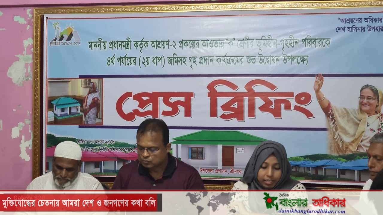 শ্রীনগরে চতুর্থ পর্যায়ের দ্বিতীয় ধাপে ভূমিহীন-গৃহহীনদের জমি সহ গৃহ প্রদান কার্যক্রমের উদ্বোধন উপলক্ষে প্রেস ব্রিফিং ফরহাদ হোসেন জনি,মুন্সীগঞ্জ প্রতিনিধিঃ শ্রীনগরে মাননীয় প্রধানমন্ত্রী কর্তৃক আশ্রয়ণ-২ প্রকল্পের আওতায় "ক" শ্রেণীর ভূমিহীন-গৃহহীন পরিবারকে…