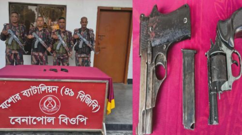 বেনাপোল প্রতিনিধিঃ যশোরের বেনাপোল পোর্টথানার দৌলতপুর সীমান্তে বিশেষ অভিযান পরিচালনা করে ২টি বিদেশী পিস্তল, ১টি ম্যাগাজিন এবং ২ রাউন্ড গুলি উদ্ধার করেছে বর্ডার গার্ড বাংলাদেশ বিজিবি সদস্যরা। সোমবার (…