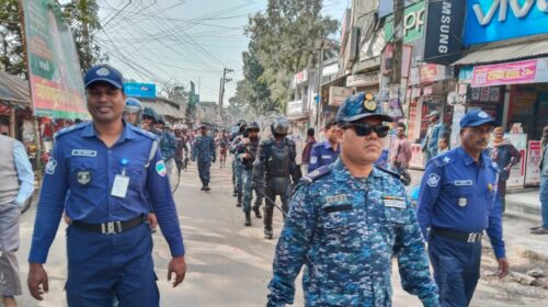হুসাইন ইসলাম রাফিত,তেরখাদা,খুলনা প্রতিনিধি : তেরখাদা উপজেলায় আসন্ন ত্রয়োদশ জাতীয় সংসদ নির্বাচনকে সামনে রেখে আজ সকাল ১০টায় নৌবাহিনীর নেতৃত্বে পুলিশ বাহিনী ও বিজিবি যৌথভাবে উপজেলা সদরে একটি মহড়া পরিচালনা…