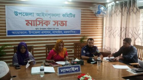 নান্দাইল (ময়মনসিংহ) প্রতিনিধি : ময়মনসিংহের নান্দাইল উপজেলা আইন শৃঙ্খলা কমিটির গুরুত্বপূর্ন সভা বৃহস্পতিবার (১৮ সেপ্টেম্বর) উপজেলা পরিষদ প্রশাসন সভাকক্ষে কমিটির সভাপতি উপজেলা নির্বাহী অফিসার সারমিনা সাত্তারের সভাপতিত্বে অনুষ্ঠিত হয়।…