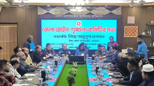 মোঃ হামিদুল ইসলাম কুড়িগ্রাম জেলা প্রতিনিধি ত্রয়োদশ জাতীয় সংসদ নির্বাচনকে সামনে রেখে কুড়িগ্রামে জেলা আইনশৃঙ্খলা কমিটির সভা অনুষ্ঠিত হয়েছে। জেলা প্রশাসকের সম্মেলন কক্ষে আয়োজিত এ সভায় সভাপতিত্ব করেন জেলা…