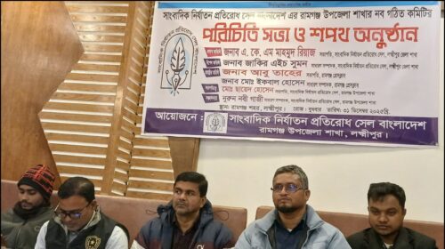মোঃ মাসুদ রানা মনি, লক্ষ্মীপুর জেলা প্রতিনিধি: সাংবাদিক নির্যাতন প্রতিরোধ সেল বাংলাদেশের লক্ষ্মীপুরের রামগঞ্জ উপজেলা শাখার বুধবার (৩১ ডিসেম্বর ২০২৫) রাতে রামগঞ্জ উপজেলার একটি রেস্টুরেন্টে পরিচিতি সভা ও শপথ…
