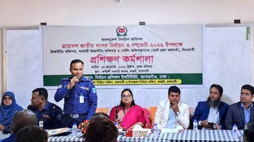 মেহেদী হাসান রাঙামাটি জেলা প্রতিনিধি ত্রয়োদশ জাতীয় সংসদ নির্বাচন ও গণভোট–২০২৬ সুষ্ঠু ও নিরপেক্ষভাবে সম্পন্ন করার লক্ষ্যে ভোটগ্রহণ কর্মকর্তাদের জন্য দিনব্যাপী প্রশিক্ষণ কর্মশালা অনুষ্ঠিত হয়েছে। শনিবার (২৫ জানুয়ারি ২০২৬…