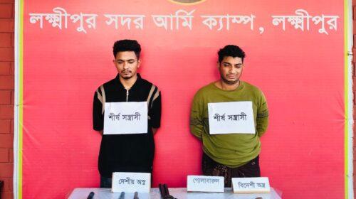 লক্ষ্মীপুর জেলা প্রতিনিধিঃ লক্ষ্মীপুরে অভিযান চালিয়ে ৫টি আগ্নেয়াস্ত্রসহ আলাউদ্দিন বরকত ও পারভেজ হোসেন নামে দুই সন্ত্রাসীকে গ্রেপ্তার করেছে সেনাবাহিনী। এসময় তাদের কাছ থেকে অস্ত্রের সঙ্গে ১৬ টি কার্তুজ উদ্ধার…
