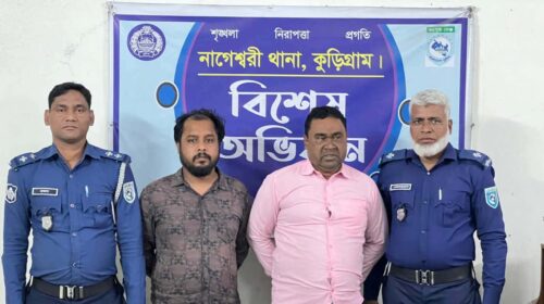 মোঃহামিদুল ইসলাম কুড়িগ্রাম জেলা প্রতিনিধি কুড়িগ্রামের নাগেশ্বরী থানা পুলিশ বিশেষ অভিযান চালিয়ে এক হাজার ইয়াবা ট্যাবলেট ও একটি এলিয়েন প্রাইভেট কার গাড়ি সহ দুইজন মাদক ব্যবসায়ীকে আটক করছে। মঙ্গলবার…