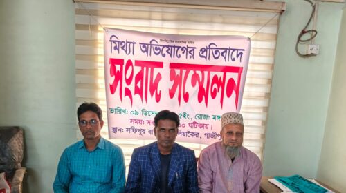 কালিয়াকৈর ( গাজীপুর) প্রতিনিধি গাজীপুরের কালিয়াকৈরে উপজেলার সিনাবহ এলাকায় জমি সংক্রান্ত বিরোধের জেরে মিথ্যা অভিযোগের প্রতিবাদে সংবাদ সম্মেলন করেছে ভুক্তভোগী পরিবার। মঙ্গলবার সকালে উপজেলার সফিপুর বাজার এলাকায় ওই সংবাদ সম্মেলন…