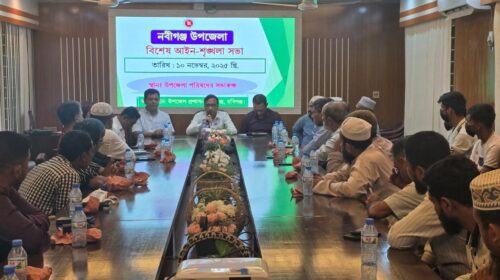 নবীগঞ্জ (হবিগঞ্জ) প্রতিনিধিঃ হবিগঞ্জের নবীগঞ্জ উপজেলা প্রশাসনের উদ্যোগে বিশেষ আইন শৃংখলা কমিটির সভা গতকাল (১০ নভেম্বর) সোমবার বিকালে উপজেলা পরিষদের সভাকক্ষে উপজেলা নির্বাহী অফিসার মোহাম্মদ রুহুল আমিন এর সভাপতিত্বে অনুষ্ঠিত…
